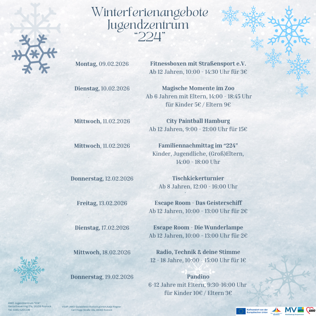 wir freuen uns sehr, denn endlich ist es soweit: Unsere Angebote für die kommenden Winterferien ist da! Auch in diesem Jahr haben wir wieder ein buntes und abwechslungsreiches Programm für Kinder, Jugendliche und junge Familien zusammengestellt – mit spannenden Ausflügen, kreativen Aktivitäten und vielem mehr. Unser Ziel ist es, den Familien, Eltern sowie jungen Menschen unvergessliche Ferienerlebnisse zu ermöglichen – mit viel Spaß, Gemeinschaft und neuen Erfahrungen.